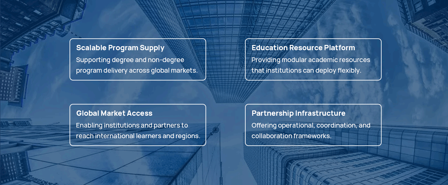 We operate as a platform and resource provider,enabling institutions to expand their academic reachthrough structured, scalable, and compliant