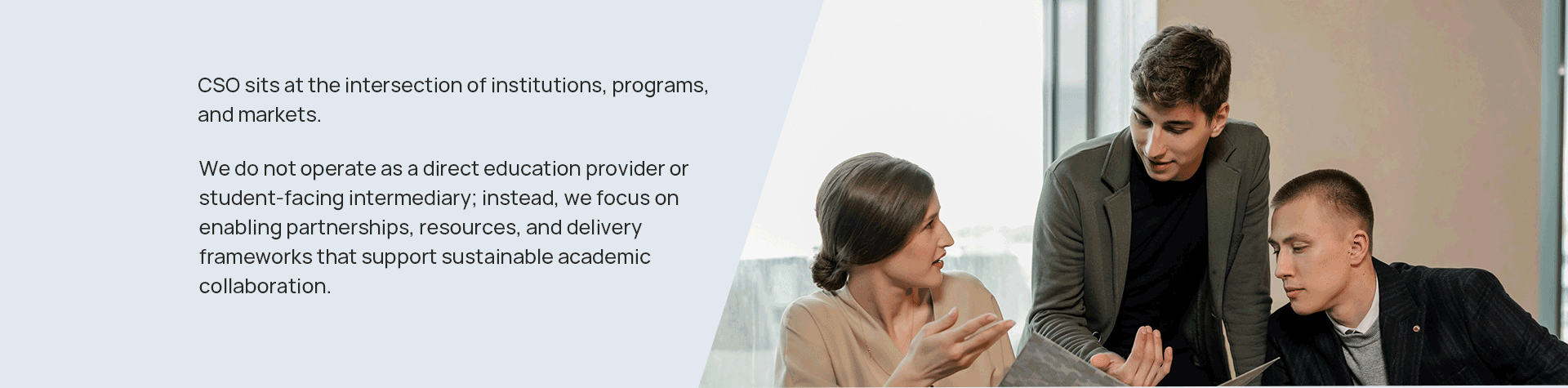 CSO is a North America-based education partnershiporganization that works with universities andeducation-focused organizations to deliver academicprograms, learning resources, and global market access.